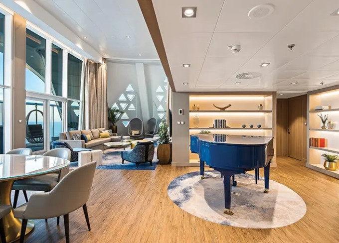 | SO - Solarium Suite Deluxe 77 m² + terasa. Výhody Royal Suite Class. 14. paluba. Max 4 osoby. | 274 753 Kč 274 753 Kč za osobu | ||