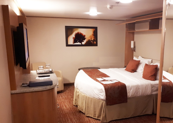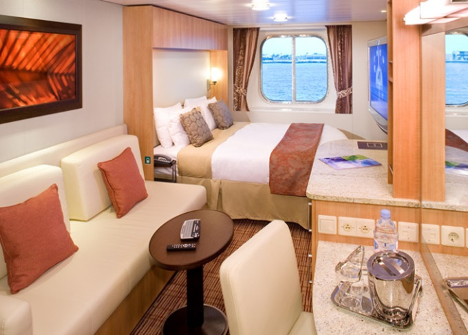 Základní vybavení všech kajut: koupelna s WC, fén, toaletní potřeby; lůžka, dostatek úložných prostor, toaletka se zrcadlem, individuálně nastavitelná klimatizace, TV, župany, trezor, minibar.