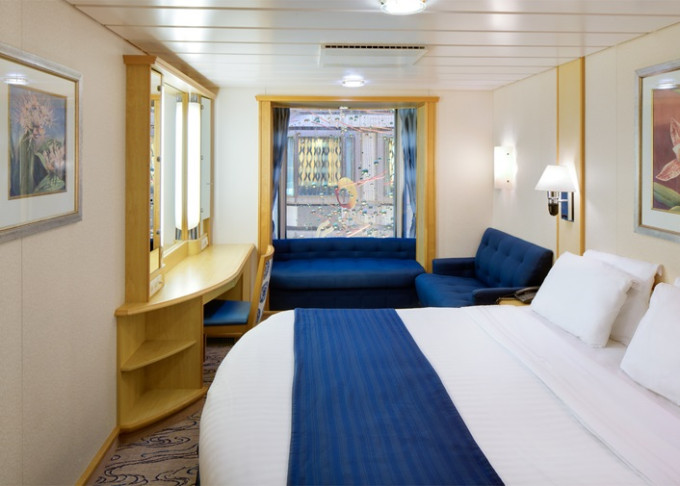 | VP - Ocean View Panoramic Suite (bez balkonu) 37,5 m². Celoplošné neotevíratelné okna. Výhody Royal Suite Class. Výhody Royal Suite Class. 12. paluba. Max 6 osob. | 77 380 Kč 77 380 Kč za osobu |