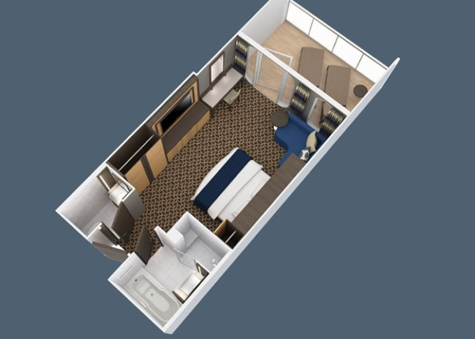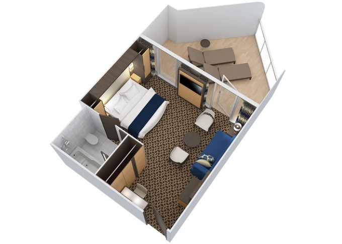 | 3U - Vnitřní kajuta s virtuálním balkonem 15 m². Obrazovka velkosti balkonových dverí s promítaným výhledem. 7. až 12. paluba. Max 2-4 osoby. | 32 770 Kč 8 193 Kč za osobu |