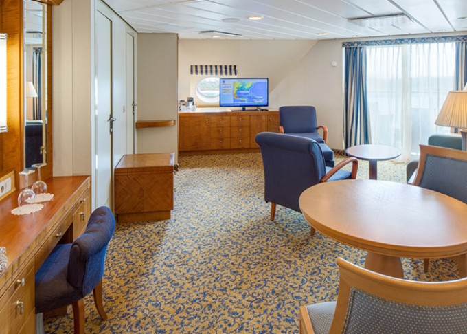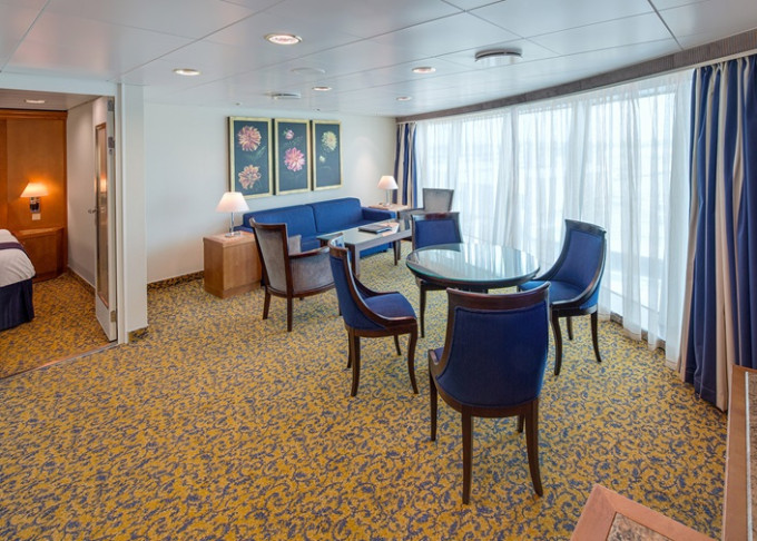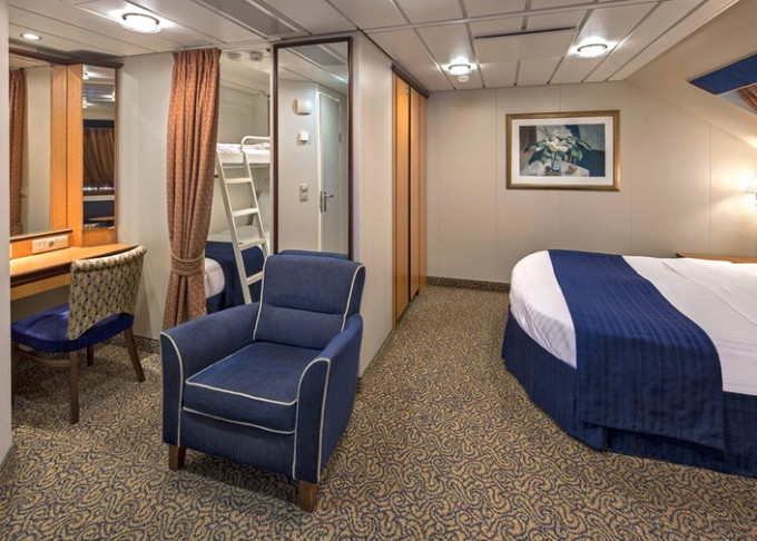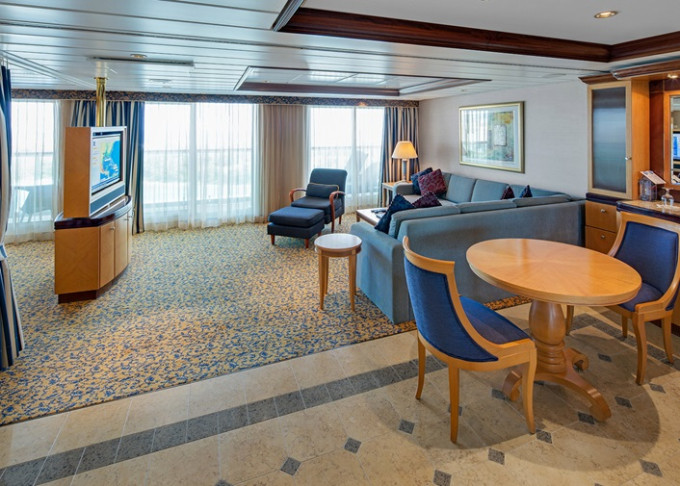 | VT - Ocean View Suite / 2 ložnice (bez balkonu) 54 m². Velké neotevíratelné okna. Výhody Royal Suite Class. 10. paluba. Max 8 osob. | 94 939 Kč 94 939 Kč za osobu |