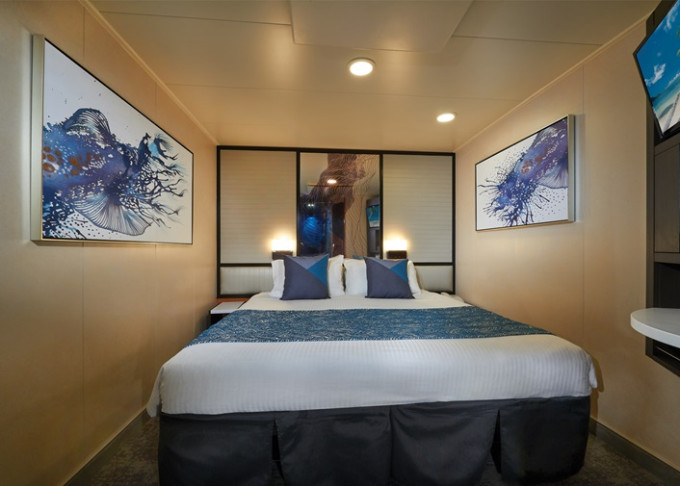 koupelna se sprchou a WC, 2 lůžka, v některých kajutách možnost přistýlek, toaletní stolek, úložné prostory, interaktivní TV, sejf, telefon, vysoušeč vlasů.
