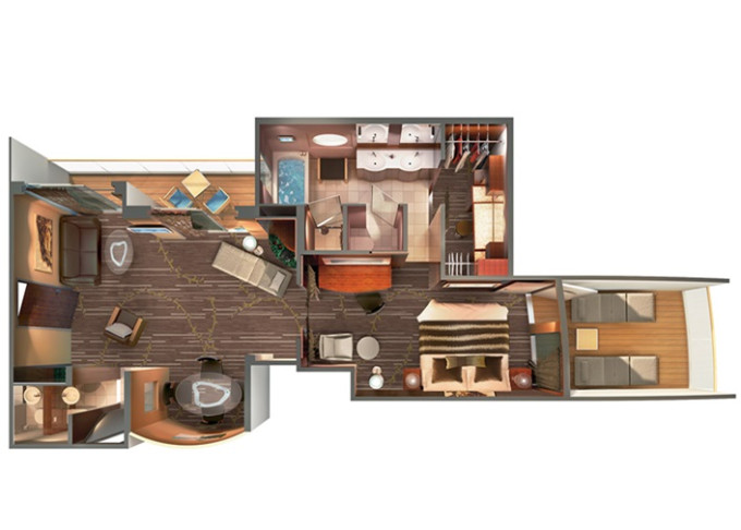 | S4 - Deluxe Family Suite 51-55 m² / balkon 5 m². Výhody Suite. 11. paluba - vpředu, střed. Max 6 osob. | 271 455 Kč 135 728 Kč za osobu | ||