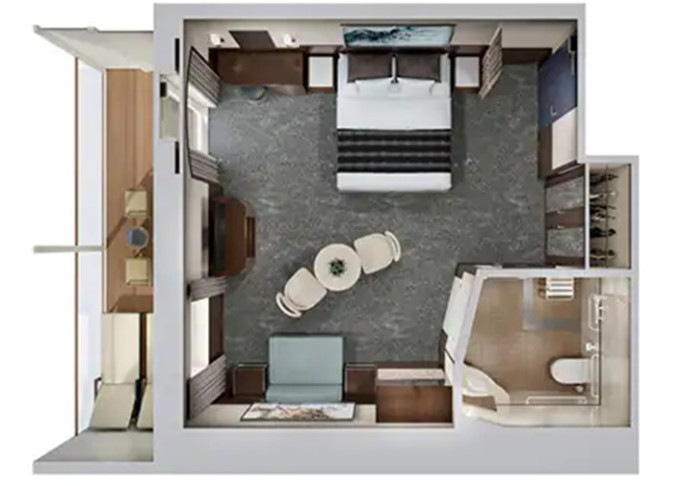 | SE - Forward-facing Penthouse 52 m² / balkon 18-22 m². Výhody Suite. 8/9. paluba - vpředu. Max 3-5 osob. | 153 062 Kč 76 531 Kč za osobu |