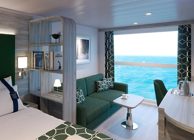 - ubytování v plně vybavené kajutě: vlastní koupelna se sprchou a WC, interaktivní TV, telefon, trezor, vysoušeč vlasů, regulovatelná klimatizace, minibar (za poplatek), Wi-fi (za poplatek)