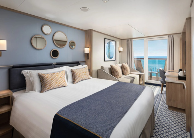 | B4 - Suite s balkonem 37 m² + balkon 11 m². Výhody Suite. 10 až 14. paluba. Max 3-4 osoby. Ložnice, obývací izba, mramorová koupelna s vířivkou. | 244 879 Kč 122 440 Kč za osobu |