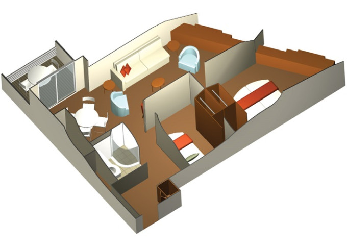 | S1 - Sky Suite 28 m² + balkon 7 m². 6. až 12. paluba. Max 4 osoby. Výhody Suite. | 360 500 Kč 120 167 Kč za osobu | ||