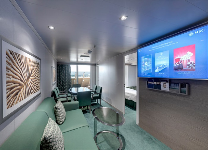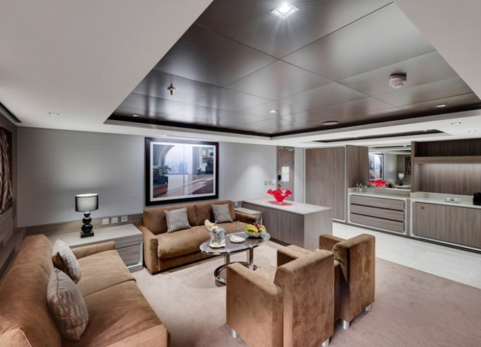 | YC3 - Yacht Club Royal Suite 62 m² + balkon 33 m² s vířivkou. Oddělený obývací pokoj a ložnice, koupelna s vanou, šatník. 16. paluba. Cenový model MSC Yacht Club. | 314 342 Kč 104 781 Kč za osobu | ||