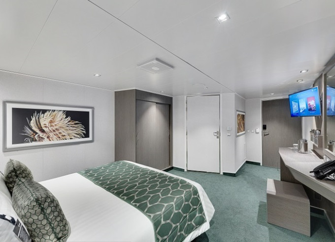 - ubytování v plně vybavené kajutě: vlastní koupelna se sprchou a WC, interaktivní TV, telefon, trezor, vysoušeč vlasů, regulovatelná klimatizace, minibar (za poplatek), Wi-fi (za poplatek)