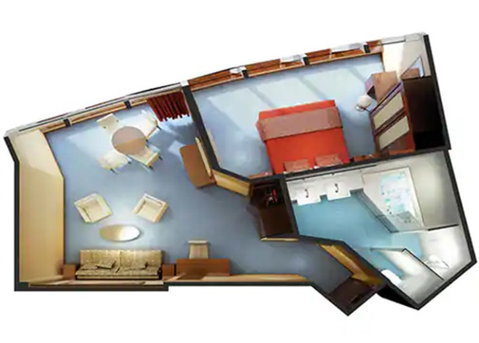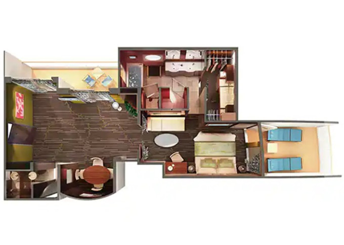 | S6 - Deluxe Owners Suite 62-68 m². Celoplošné neotevíratelné okna. Výhody Suite.12. paluba - vpředu. Max 4-6 osob. | 227 995 Kč 113 997 Kč za osobu | ||