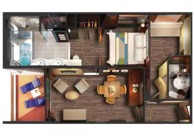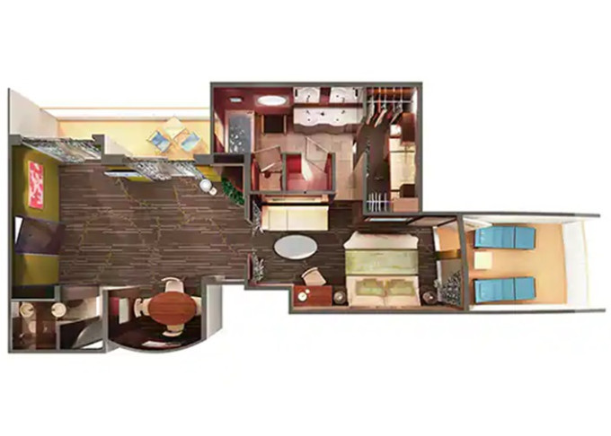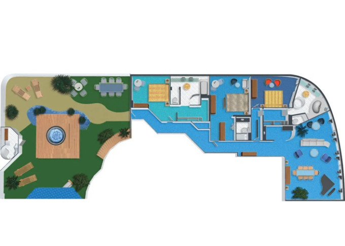 | S1 - Garden Villa - 3 ložnice 622 m² / balkon 414 m². Vířivka. Výhody Suite. 14. paluba - střed. Max 7 osob. | 711 909 Kč 355 954 Kč za osobu |