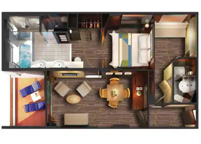 | S3 - Owners Suite 67 m² / balkon 14 m². Vvířivka. ýhody Suite. 9. paluba - vpředu. Max 4 osoby. | 280 697 Kč 140 349 Kč za osobu | ||