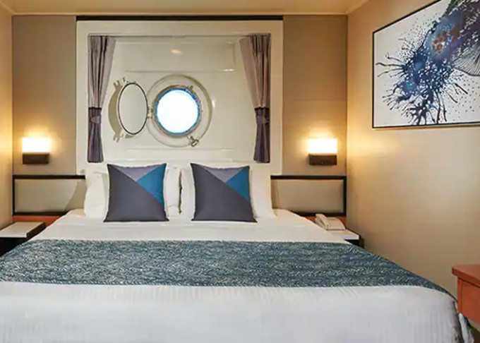 koupelna se sprchou a WC, 2 lůžka, v některých kajutách možnost přistýlek, toaletní stolek, úložné prostory, interaktivní TV, sejf, telefon, vysoušeč vlasů.