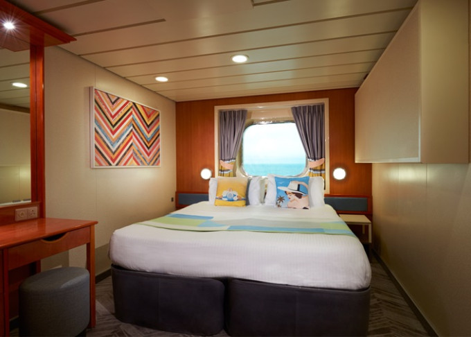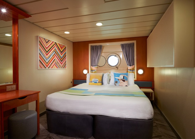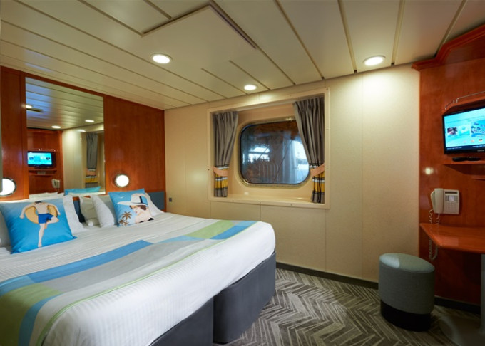 koupelna se sprchou a WC, 2 lůžka, v některých kajutách možnost přistýlek, toaletní stolek, úložné prostory, interaktivní TV, sejf, telefon, vysoušeč vlasů.