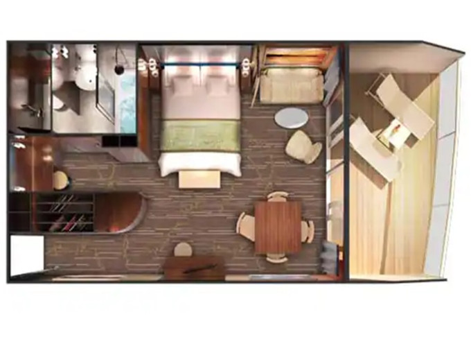 | SD - Forward-facing Deluxe Penthouse 48 m² / balkon 13 m². Výhody Suite. 10. paluba - vpředu. Max 4 osoby. | 224 698 Kč 112 349 Kč za osobu |