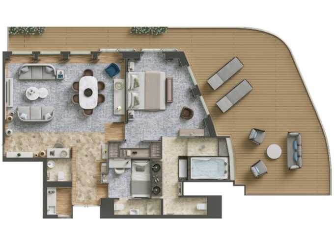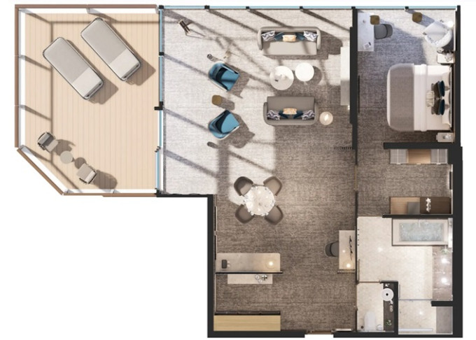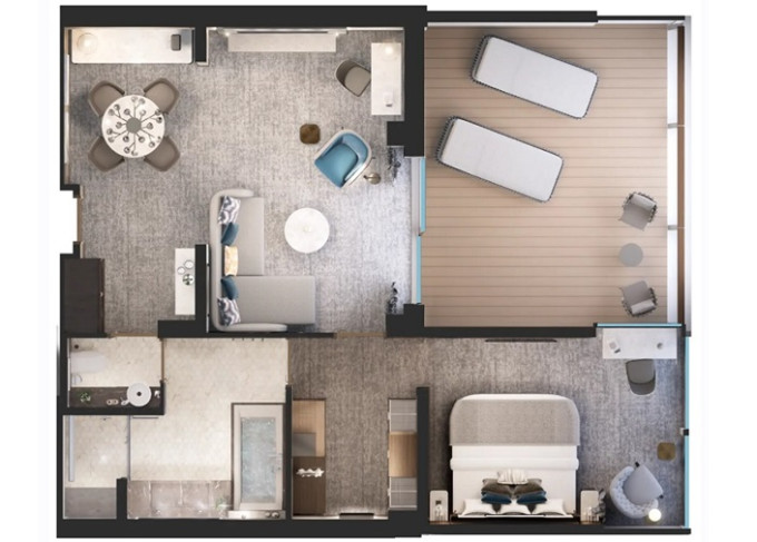| G1 - Grand 1 Suite 155 m² / veranda 64 m². Ložnice, oddělená obývací část a jídelna. | 1 603 556 Kč 801 778 Kč za osobu |