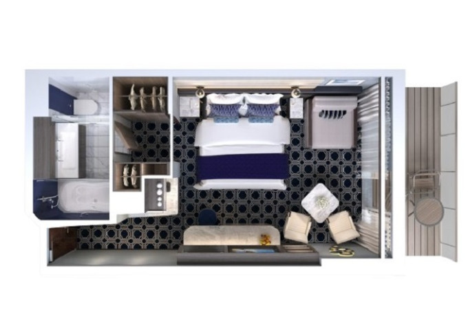 | B1 - Kajuta s balkonem Aft-facing od 20 m² / balkon od 4 m². 9. až 15. paluba - vzadu. Max 2-3 osoby. | 54 651 Kč 27 325 Kč za osobu | ||