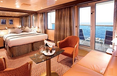 | S - Suite s balkonem 31 m² (včetně balkonu). 7,9. paluba. Max 2-4 osoby. Cenový model All Inclusive .Výhody Suite. | 320 336 Kč 64 067 Kč za osobu |