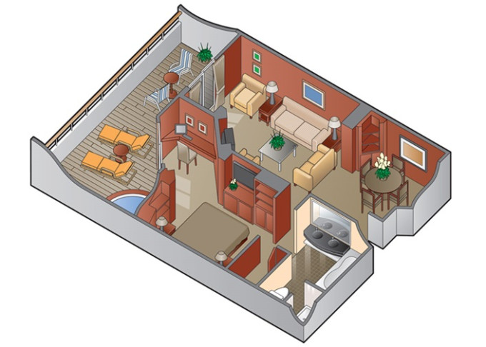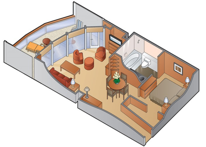 | RS - Royal Suite 51 m² + balkon s vířivkou 18 m² . Koupelna s vířivkou. 6. paluba. Max 3 osoby. Výhody Suite. | 515 486 Kč 257 743 Kč za osobu | ||