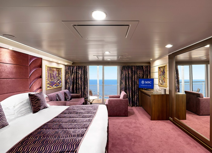 | YC2 - Yacht Club Executive & Family Suite s oknem 40-51 m². Neotevíratelné panoramatické okna. Oddělený obývací pokoj a ložnice. 12. paluba. Cenový model MSC Yacht Club. | 127 935 Kč 63 967 Kč za osobu | ||
