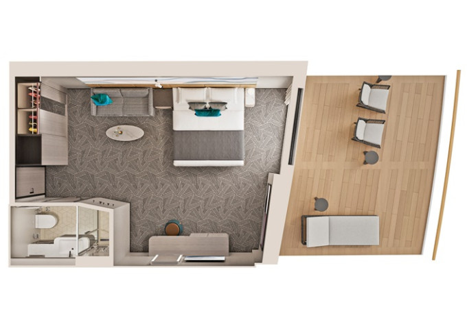| H5 - Apartmá The Haven Owner's Suite s velkým balkónem 40-45 m² / balkón 10-12 m².12. paluba, Max 4 osoby. Výhody The Haven | 535 218 Kč 267 609 Kč za osobu | ||