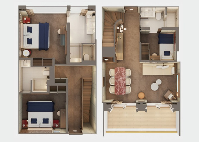 | H8 - Apartmá The Heaven Duplex Suita s velkým balkónem Dvoupodlažní apartmá. 74 m² / balkón 13 m².15/16. paluba. Max 6 osob. Výhody The Haven. | 647 866 Kč 323 933 Kč za osobu | ||