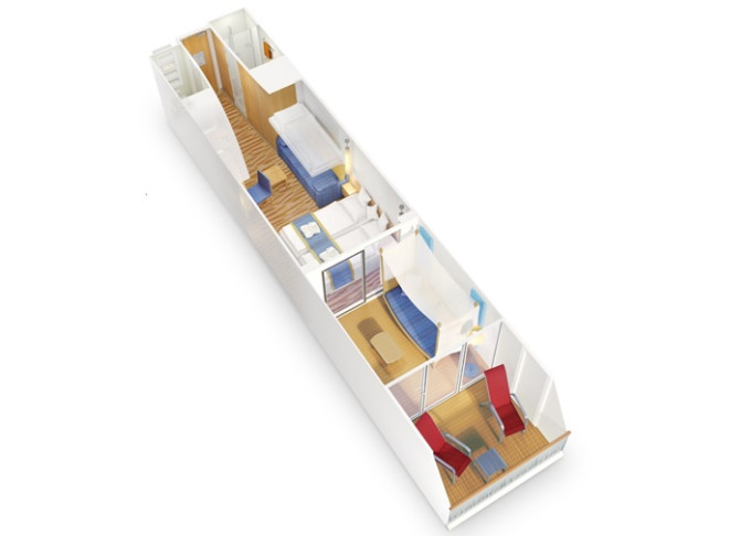 | VD - Kajuta s verandou Komfort PREMIUM od 24 m² / balkon od 6 m². Cenový model Premium. Max 4 osoby. | 52 703 Kč 26 351 Kč za osobu | ||