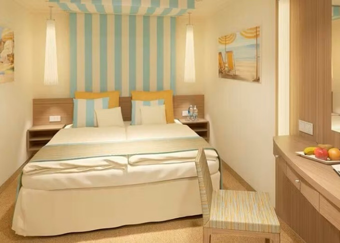 Ve všech kajutách se nachází koupelna se sprchou, 2 pevná lůžka a v některých kajutách též 2 přistýlky ve formě sklopných lůžek či rozkládacího sofa, úložné prostory, trezor, vysoušeč vlasů, telefon, TV, regulovatelná klimatizace.