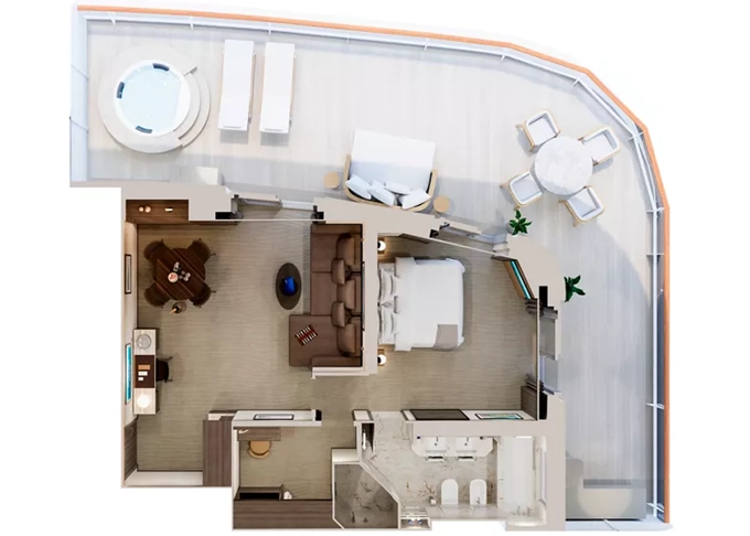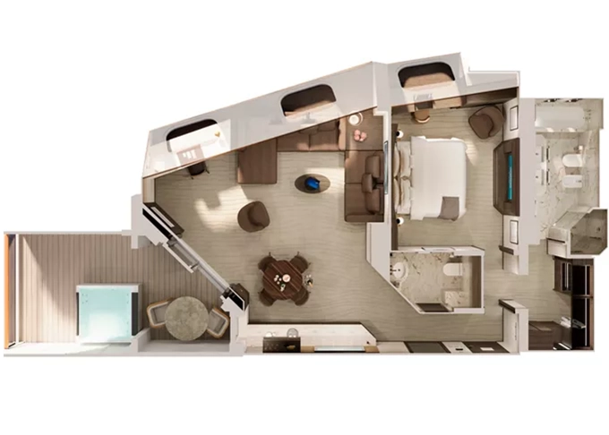 | Ocean Suites - Ocean Grand Terrace Suite Suita 28 m² + terasa 11 m². 6/7. paluba. Maximální kapacita 2 dospělé osoby a 1 dítě do 17,99 let. | 151 988 Kč 151 988 Kč za osobu | ||