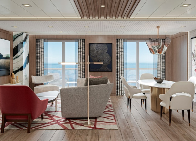 | OC - Oceania Suite 77 m² + balkon s vířivkou od 16 m². Výhody Oceania Suite. 11/12. paluba. Max 2-3 osoby. 3 izby: Ložnice, obývací místnost, jedáleň, mediálna místnost s 50″ LCD Tv, 2 koupelny (1 s vířivkou), šatník, extra wc. | 542 961 Kč 271 480 Kč za osobu | ||