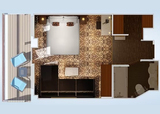 | 7C - Kajuta s balkónem Cca 21 m² ( kajuta i balkón); balkon je částečně chráněný - "cove". | 54 501 Kč 27 250 Kč za osobu | ||