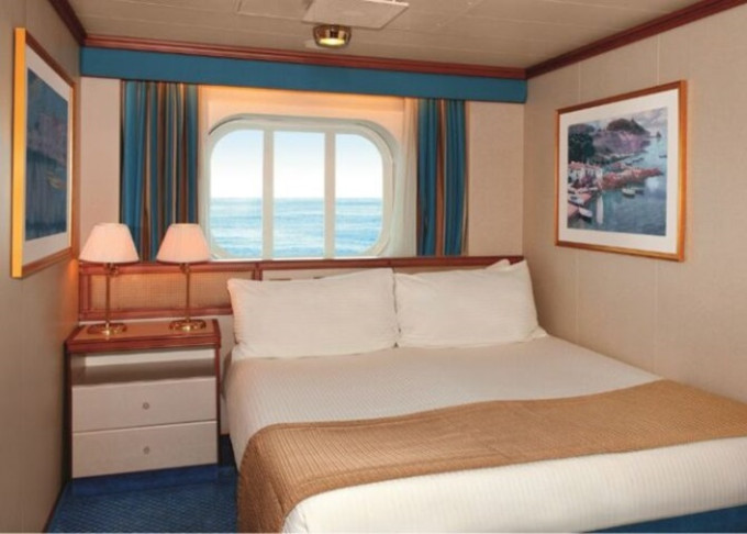 | OV - Vnější kajuta / omezený výhled 16 m². Neotevíratelné okno s omezeným výhledem. Max 2-4 osoby (2 horní lôžka). | 92 517 Kč 46 258 Kč za osobu | ||