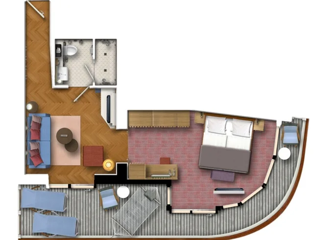 | SUSO - Übersee Suite 40 m² + balkon 9 m² s lehátky a houpací sítí. 14. paluba. Max 4 osoby. Výhody Suite. | 174 793 Kč 174 793 Kč za osobu | ||
