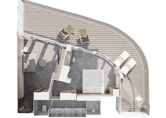 | SUFO - Fernweh Suite kat. A 28-38 m² + balkon 34 m² se stolem, lehátky a houpací sítí. 14. paluba. Max 4 osoby. Výhody Suite. | 168 523 Kč 56 174 Kč za osobu |
