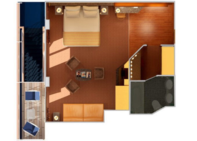 | 8N - Kajuta s větším balkonem Aft-View - výhled dozadu. 17 m² / balkon 5,5 m². Vzadu. | 69 238 Kč 34 619 Kč za osobu | ||