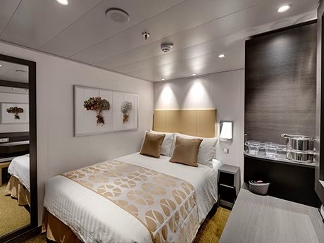 Kajuta vnitřní: od 12 m², kajuta s manželskou postelí (na požádání 2 oddělené postele) a 1-2 vyklápěcí horní lůžka. Klimatizace, koupelna se sprchou a WC, toaletní stolek, skříň, interaktivní TV, sejf, telefon, vysoušeč vlasů, osobní virtuální asistent ZOE.