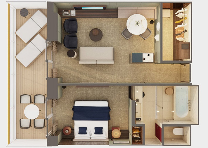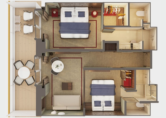 Suite: nejluxusnější a nejprostornější kajuty na lodi; možnost přistýlek
