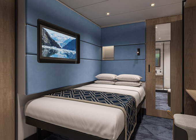 koupelna se sprchou a WC, 2 lůžka, v některých kajutách možnost přistýlek, toaletní stolek, úložné prostory, interaktivní TV, sejf, telefon, vysoušeč vlasů.