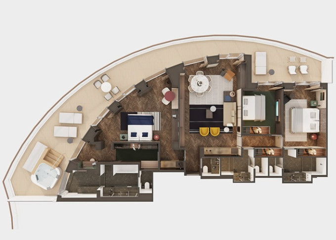 | H3 - Suite THE HAVEN DELUXE OWNER'S s balkónem 149-162 m² / balkón s vířivkou 57-68 m². Výhody The Haven. 13/15. paluba - vzadu. Max 6 osob. | 730 292 Kč 365 146 Kč za osobu | ||
