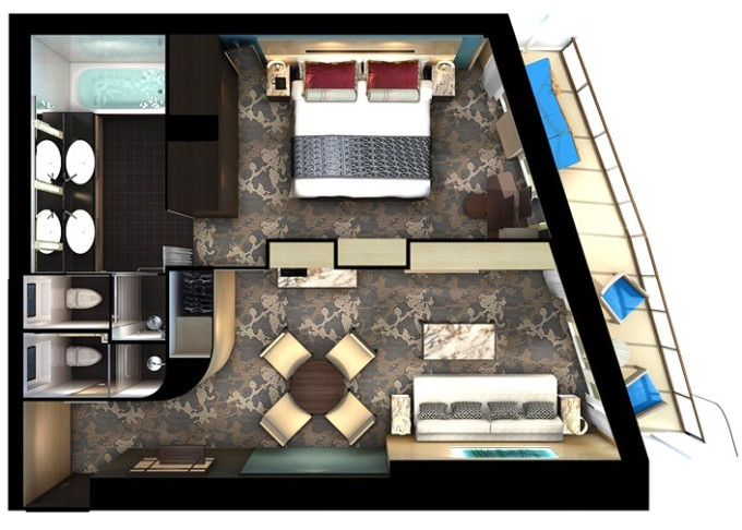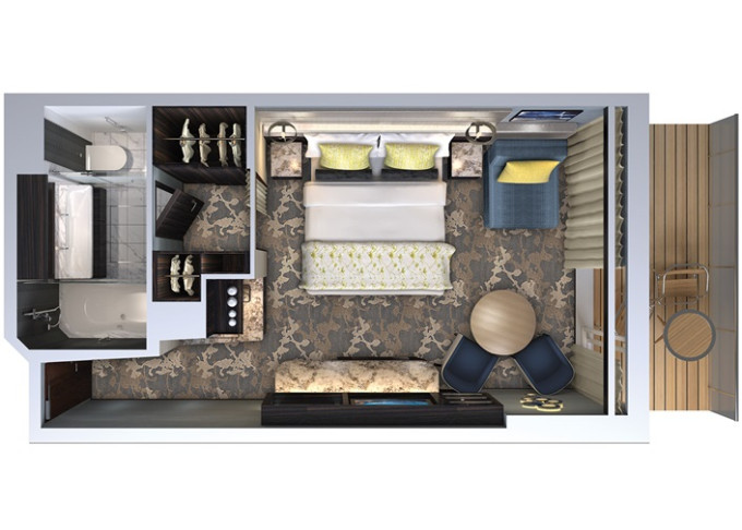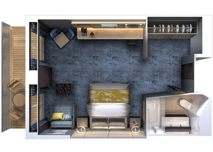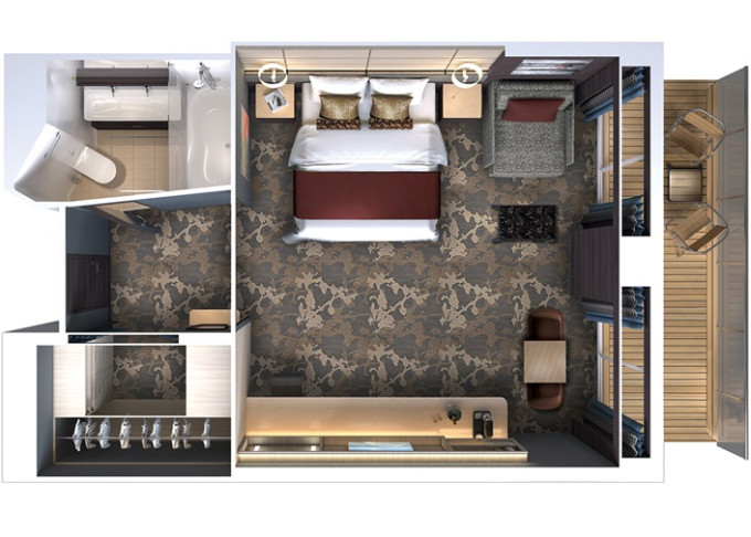 | HJ - The Haven Suite s balkonem 35 m² / balkon 6 m². Výhody The Haven. 14. paluba - střed. Max 4 osoby. | 280 697 Kč 140 349 Kč za osobu | ||