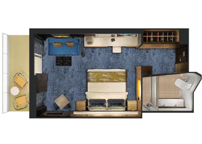 | B1 - Kajuta s balkonem Aft-facing od 20 m² / balkon 4-5 m². 9. až 15. paluba. Max 2-3 osoby. | 157 308 Kč 78 654 Kč za osobu | ||