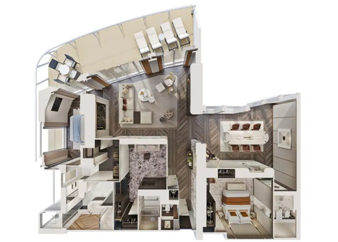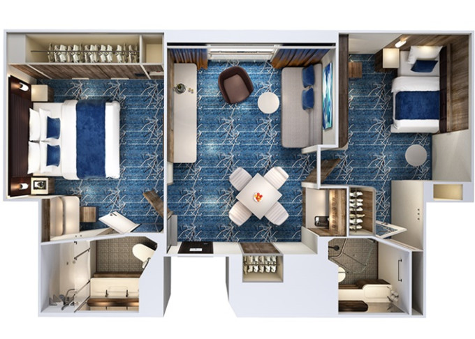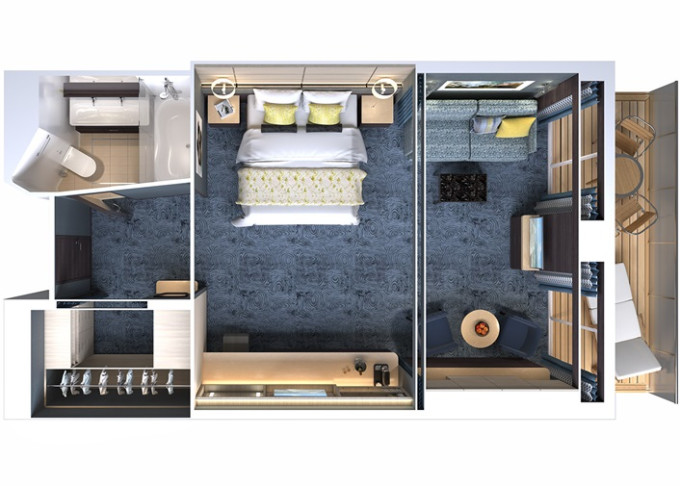 | H6 - The Haven Family Villa - 2 ložnice 50 m² / balkon 4 m². Výhody The Haven. 18. paluba vpředu. Max 6 osob. | 464 282 Kč 232 141 Kč za osobu | ||