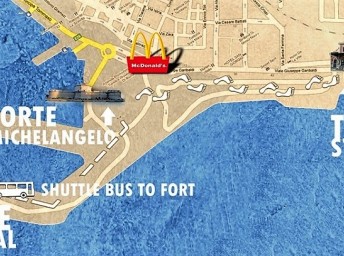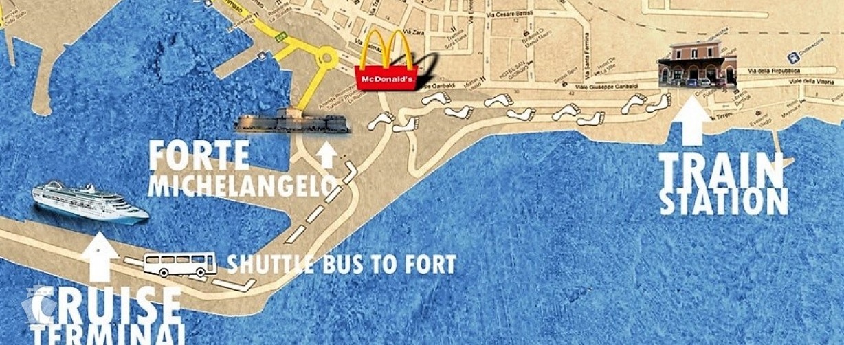 • placený shuttle bus od lodi k nádraží Civitavecchia stojí 6 EUR (cena k roku 2026)
