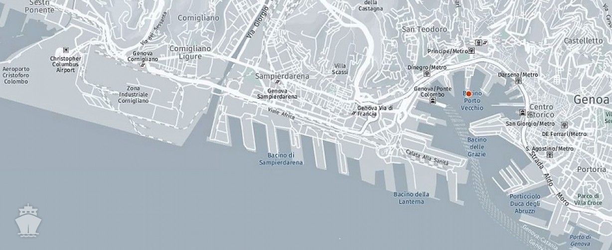 Lodě kotví u Le Stazioni Marittime, na západním konci města.Centrum města je tedy blízko, od přístavu Le Stazioni Marittime do starého přístavu Porto Antico je to pouze 1,5 km (20 min pěšky).